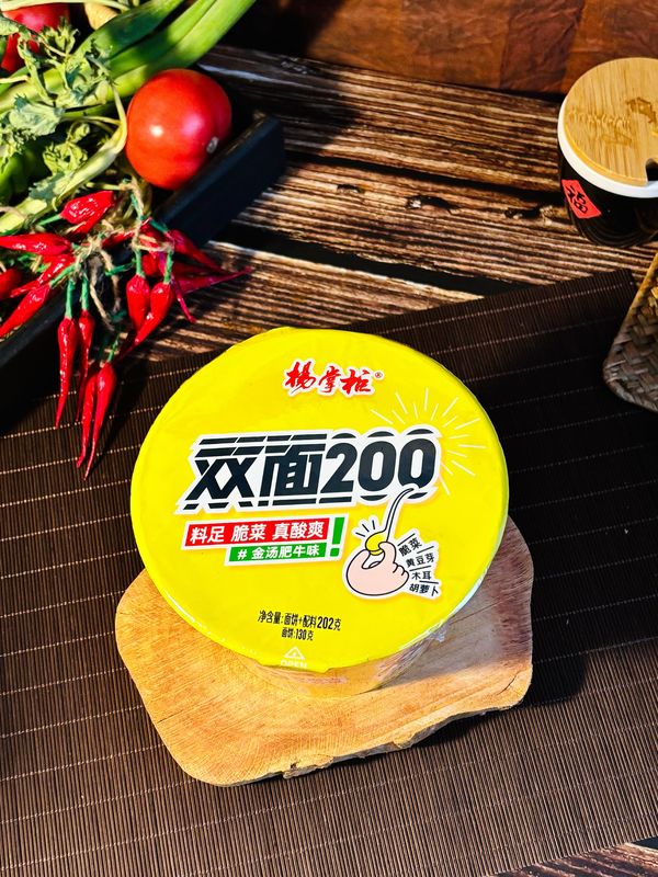 Perfeito para Jantares em Família: Adicione um toque especial aos seus jantares em família com o Macarrão Instantâneo Frito YangZhangGui. O Sabor de Carne Dourada, combinado com ingredientes de qualidade, como macarrão, molho, tempero, vinagre e vegetais, oferece uma opção de refeição saborosa e satisfatória que toda a família vai adorar. Com um peso de 202g por embalagem, é fácil preparar o suficiente para todos.